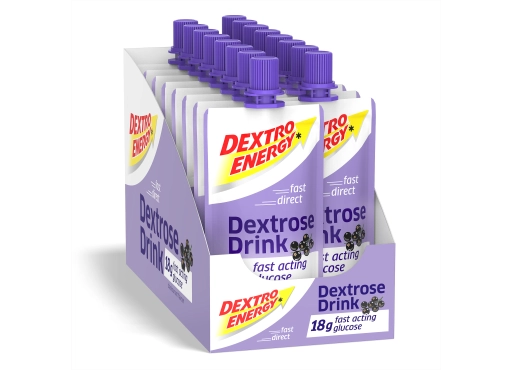 Set mit 12 Packungen flüssiger Glukose Dextro Energy Schwarze Johannisbeere 2WW.